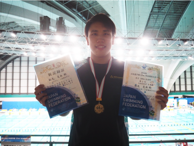 当社が所属契約をしている競泳 松元克央選手が、このたび行われました「第64回日本選手権(25m)水泳競技会」(10月22日〜23日 東京辰巳国際水泳場、東京都)にて見事100m・200m・300m自由形にて優勝し、3冠を達成、200m自由形で自身が記録した短水路日本新記録を更新いたしました。