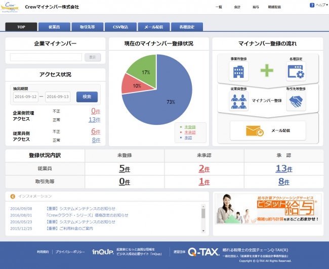 株式会社アックスコンサルティング(所在地:東京都渋谷区 代表取締役:広瀬元義)が開発・提供するマイナンバークラウド管理システム「Crewマイナンバー」が9月14日に新機能をアップデートしました。今回のアップデートにより、新たに取引先と株主のマイナンバーを登録することができるようになりました。