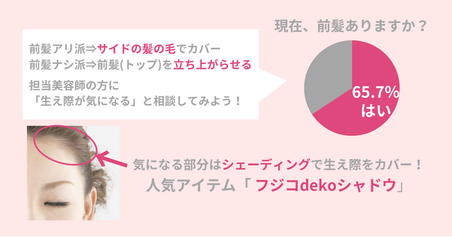 65.7%の女性が現在前髪アリ。生え際が目立ちにくい髪型とは