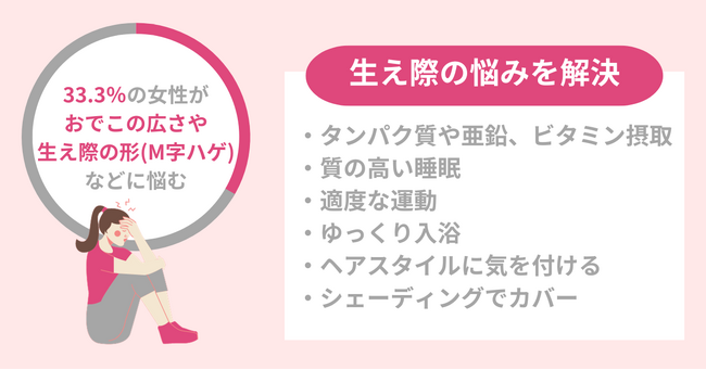・33.3%の女性がおでこの広さや生え際の形(M字ハゲ)などに悩む