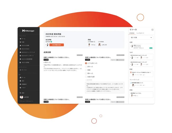 HiManagerは、OKR/MBO、1on1、リアルタイムフィードバックをベースにしたパフォーマンス・マネジメントサービスです。