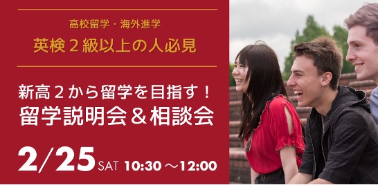 対象: 留学を考えている新高2生 及び その保護者の皆さん(英検2級以上の方が対象です)