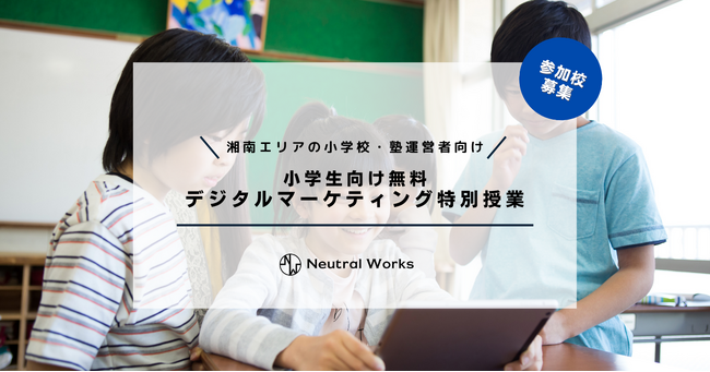 湘南を拠点としたデジタルマーケティングカンパニー株式会社ニュートラルワークス(本社:神奈川県茅ヶ崎市、代表:三木 五月)は、小学生を対象にした「デジタルマーケティング特別授業」を開催することになりました。この授業では、ウェブサイトやSNSなどのデジタルマーケティングについて、楽しく分かりやすく学ぶことができます。なお、本授業は完全無料で、参加費用は一切かかりません。こちらの授業に参加してくださる「学校」の募集を開始しますので、ぜひ、お気軽にお問い合わせください。