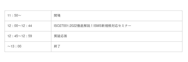 セミナー名:ISO27001:2022徹底解説!ISMS新規格対応セミナー
