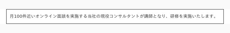 ※アポイント獲得・オンライン面談のスキルをコンテンツごとに講義形式で研修を行います。(約2時間)
