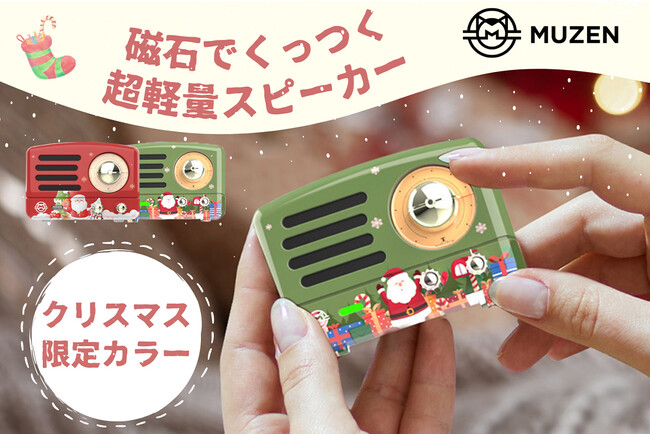 磁石でくっつく超軽量スピーカー MUZEN「PETA」クリスマス限定カラー2023年10月26日(木)10時よりクラウドファンディングを開始