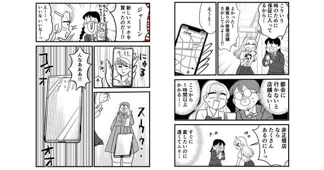 読者からは「“近くに正規店がない!”あるある状況めっちゃわかります」「iPhoneの保険高いからやめようとしてた私にピッタリな保険きた」などの共感の声が集まりました。