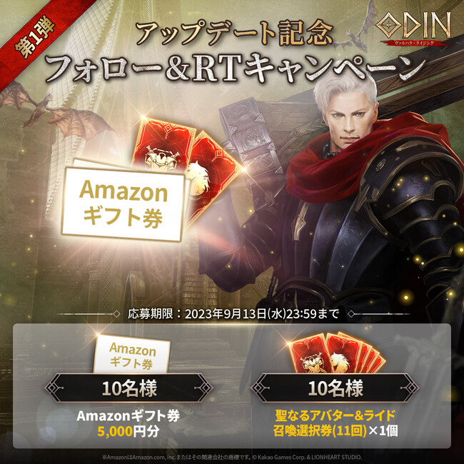 8月31日(木)より『オーディン:ヴァルハラ・ライジング』の新規エリートダンジョン「影の城塞」のアップデートを記念し、参加者の中から10名様にAmazonギフト券5,000円分が当たるキャンペーンを開催します。