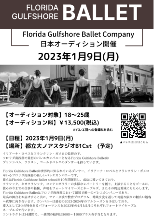 【オーディション情報!】アメリカ・フロリダ ガルフショアバレエ、日本オーディション開催決定!