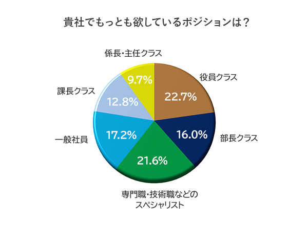 必要とするポジションは「役員クラス」「スペシャリスト」「部長クラス」が6割を占める
