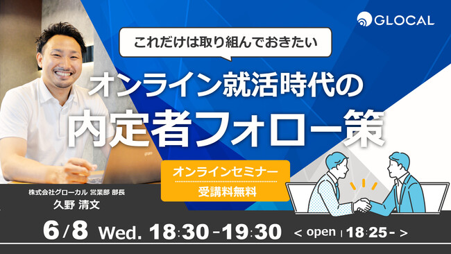 地域の中小・中核企業を対象に経営コンサルティング事業を行う株式会社グローカル(東京都渋谷区、以下グローカル)は、30億件以上の求人ビッグデータで人材業界を支援する株式会社フロッグ(東京都千代田区、以下フロッグ)と、経営者・人事責任者を対象に、これからの採用活動について検討する無料オンラインセミナーを、2022年9月7日(水)14:00から開催します。