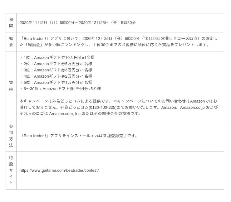 株式会社外為どっとコム(以下「外為どっとコム」、本社:東京都港区、代表取締役社長:竹内 淳)は、投資初心者でもゲーム感覚でFXが学べるFX入門デモトレードバトルアプリ『Be a trader !』にて、11月2日(月)より第七回『Be a trader ! トレードバトル』を開催いたますので、お知らせいたします。