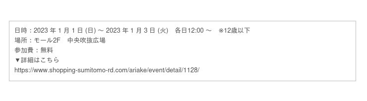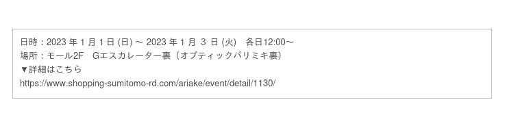 URL:https://www.shopping-sumitomo-rd.com/ariake/shopping/