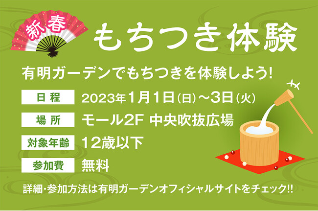 にっぽんのお正月を楽しもう!今年は有明ガーデン内に“神社”が登場!大好評の“もちつき”と“福引き”は3日間に拡大!
