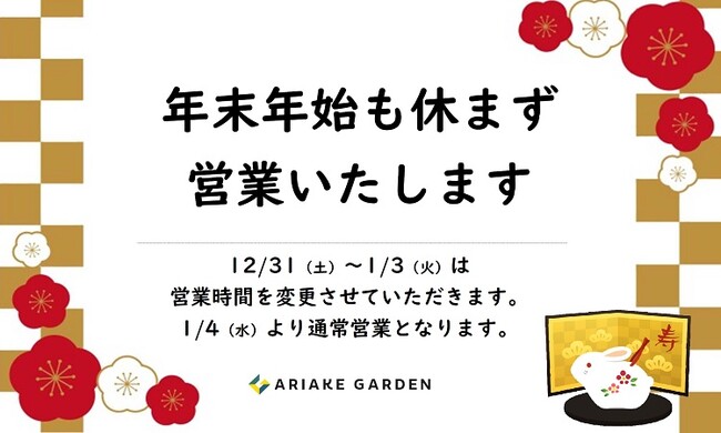 有明ガーデンは年末年始も休まず営業いたします。