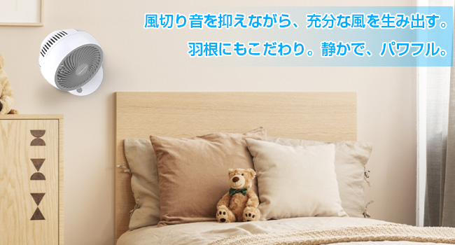 3枚羽根で強力な風量を確保しつつ、回転音が気にならない超静音設計です。睡眠中や作業中でも音が気にならず、生活の妨げになりません。高性能DCモーター搭載で、コストパフォーマンスと高い性能の両立を実現し、環境にも家計にも優しく、エコで快適な暮らしを応援します。