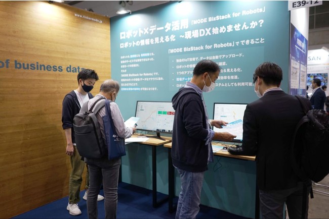今回の展示では、MODEが目指す「ビジネスをモードチェンジする現場DX」をテーマに、IoT技術を使った「つなぐ・貯める・見える」をご体感いただけるブースを設営いたしました。