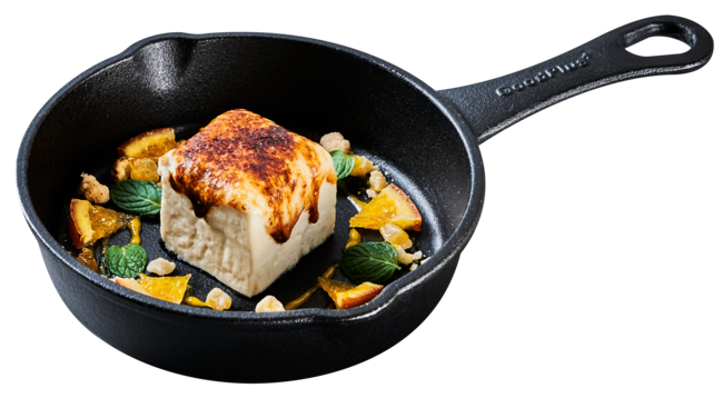 ココナッツオイルと豆乳ヨーグルトでオリジナルのプラントベースクリームチーズを開発しました。イートインでは食べる直前に炙ることで、ブリュレしたオーガニックシュガーの香ばしさとパリッと食感、口の中でとろけるクリーミーなチーズケーキのハーモニーが楽しめます。見ても楽しめる新しいプラントベースレアチーズケーキです。