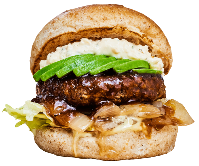 濃厚なタルタルソースとコクのある甘辛てりやきソースが絡み合う2foodsてりやきバーガー。 スパイス香るジューシーパティと肉厚ふっくらパティの、2種類のプラントベースのパティが選べます。食べ応えのあるアボカドとフレッシュなしゃきしゃき野菜をサンドした、コクと旨味のバランスが絶妙なやみつきになるハンバーガーです。