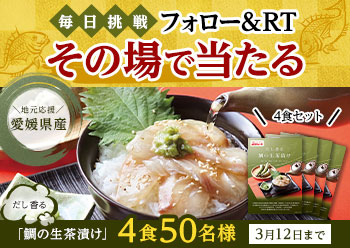 〈地元応援!「〜だし香る〜鯛の生茶漬け」が50名様に当たる!キャンペーン〉