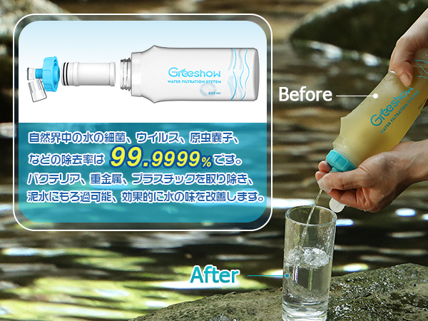 【Amazon prime 専用】’’2023業界新登場’’ Greeshow 携帯浄水ボトル 高性能浄水器 【アウトドア/キャンプ用品】防災、緊急時に適用!いまたったの3680円!