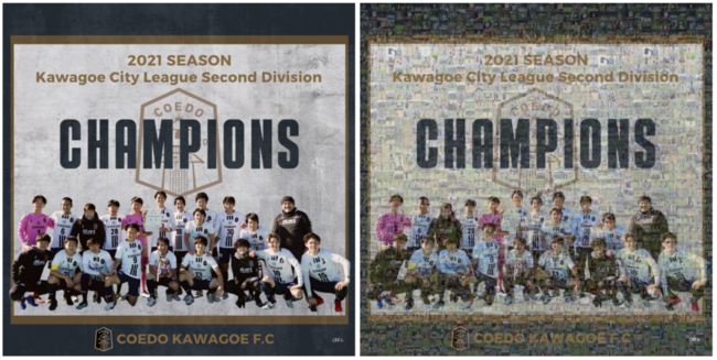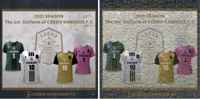 今回は通常ver.の他に2021年シーズンの場面を使用したモザイクアートver.(異なる多数の図柄が一枚の図柄を形成している作品のこと)もご用意させていただきました。