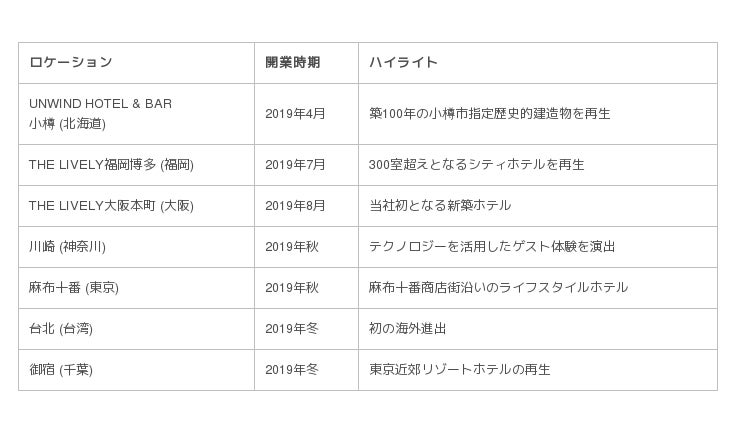 STAY:ライフスタイルホテル8棟600室を運営。2019年7月博多に9棟目を開業
