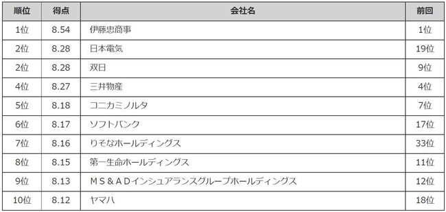 〜「伊藤忠商事」が2年連続で総合第1位を獲得!〜