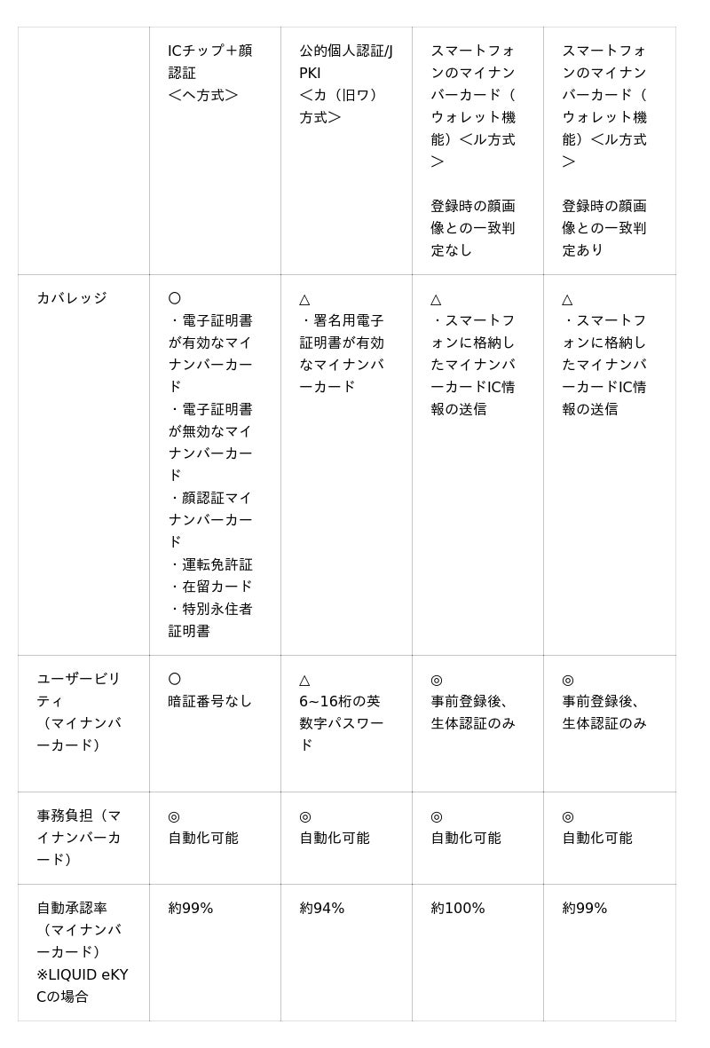 参考:犯収法に準拠した本人確認書類のICチップを活用した方式の比較