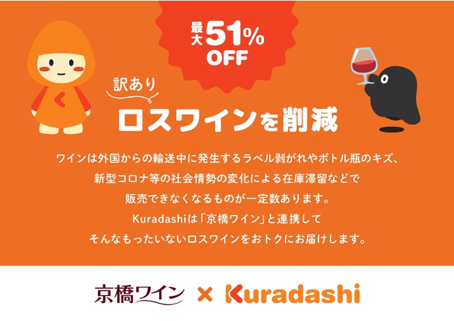 3月4日からは、「京橋ワイン」を展開するワインキュレーション株式会社と連携し、Kuradashiのポップアップストアとしては初めて、ワインの販売も行います。また、ロスワインが発生する背景についても知っていただきたいという想いから、品質には問題がないにも関わらず、通常では販売できなくなってしまったロスワインと正規品の比較ができるような展示も実施いたします。