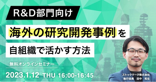 【1月12日(木) 無料セミナー】『R&D部門向け 海外の研究開発事例を自組織で活かす方法』を開催(ストックマーク主催)