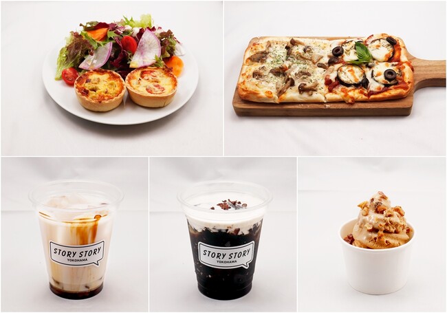 主催のオフィスオーガスタ30周年を記念して、山崎まさよしさんの人気楽曲「One more time, One more chance」に登場する“桜木町”にある商業施設コレットマーレ5階のカフェ「STORY STORY YOKOHAMA by Yurindo」で、山崎まさよしさんをイメージした「おとなのコーヒーゼリードリンク」や秦 基博さんにゆかりのある宮崎・横浜をイメージした「野菜たっぷりキッシュプレート」、さらに“三十路”を迎えたオフィスオーガスタに合わせて味噌を使用した和風ピザなど、コラボメニュー5品を提供します。コラボ商品をご注文の方には、一商品につきノベルティを1つプレゼント!(数に限りがあります )