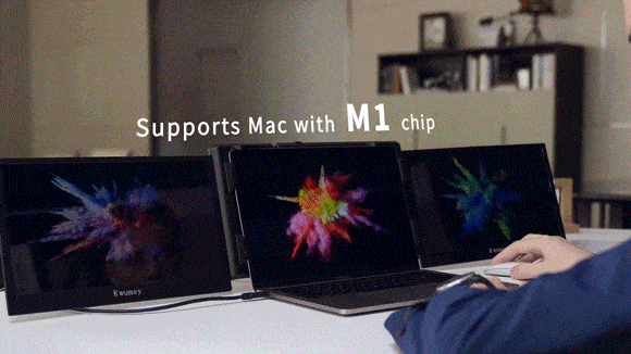 「KWUMSY P2 PRO」は、1本のケーブルでノートパソコンに2画面を追加できる、最新型デュアルモバイルディスプレイです。ドライバーソフトを使用することで、1つしか画面を拡張できないM1チップ搭載MacBookでも、インパクト大な3画面を使用できます!