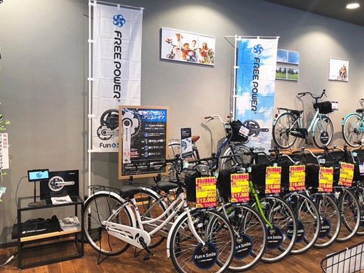 電池のいらないアシストギア・フリーパワーの取り扱いもあり、通常はお取り寄せの商品ですが、春日部緑町店ではそのままお持ち帰りいただけるフリーパワー搭載車もご用意しております。