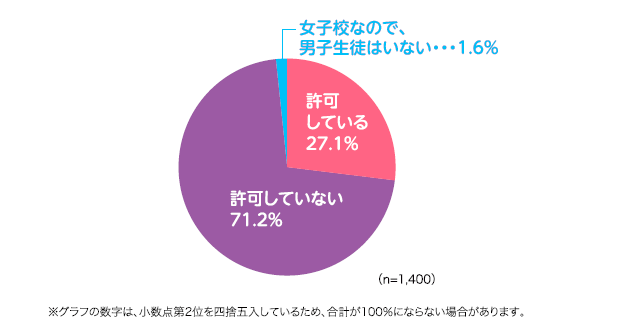 男子生徒のスカート制服の着用の許可については、「許可している」(27.1%)、「許可していない」(71.2%)という結果で、男子生徒に対して、スカート制服の着用を許可している中学・高校は3割に満たない状況です。