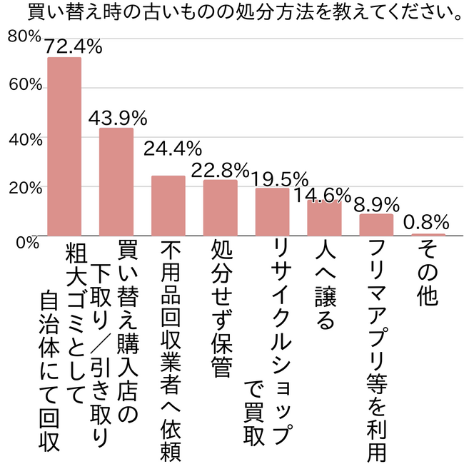 そこで、アンケートでは次に、買い替え時の古いものの処分方法について尋ねました。