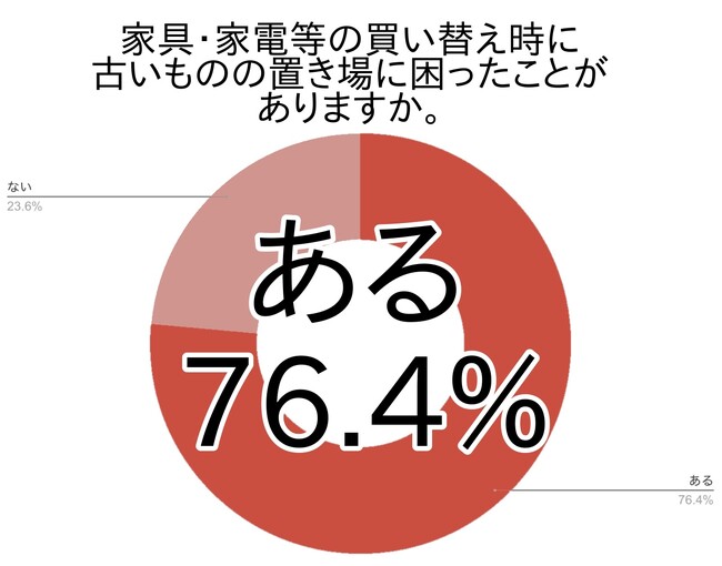 アンケートでははじめに、家具・家電等の買い替え時に古いものの置き場に困ったことがあるか尋ねました。
