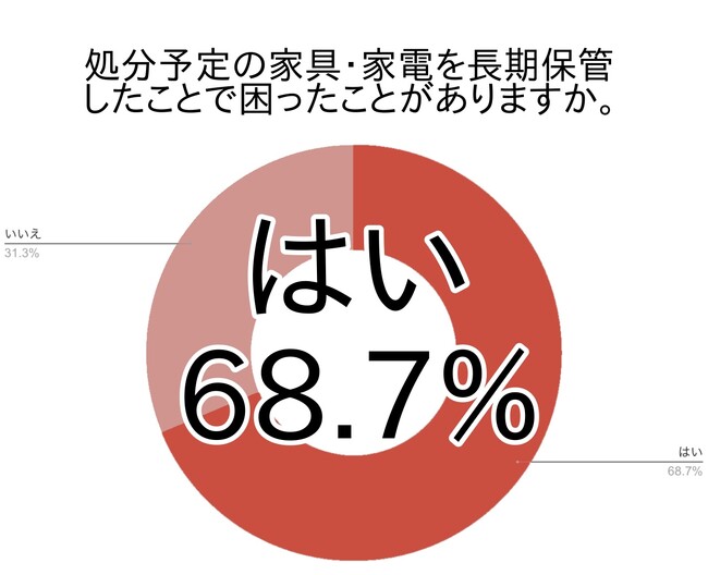また、生活スペースや収納スペースへの圧迫等、使わない家具・家電の長期保管で困りごとがあった方は約7割にのぼりました。