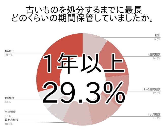 そこで、アンケートでは次に、古いものを処分するまでに最長どのくらいの期間保管していたかを尋ねてみました。