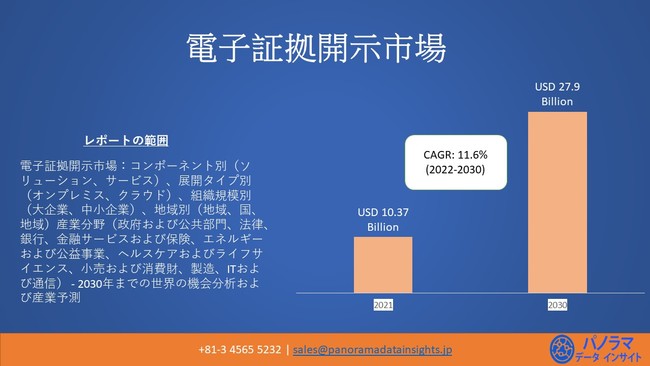 電子証拠開示の世界市場規模は2021年に103. 7億米ドル、2030年には279億米ドルに達すると予測され、2022年から2030年までの予測期間において年平均成長率(CAGR)11.6%で成長するとされています.