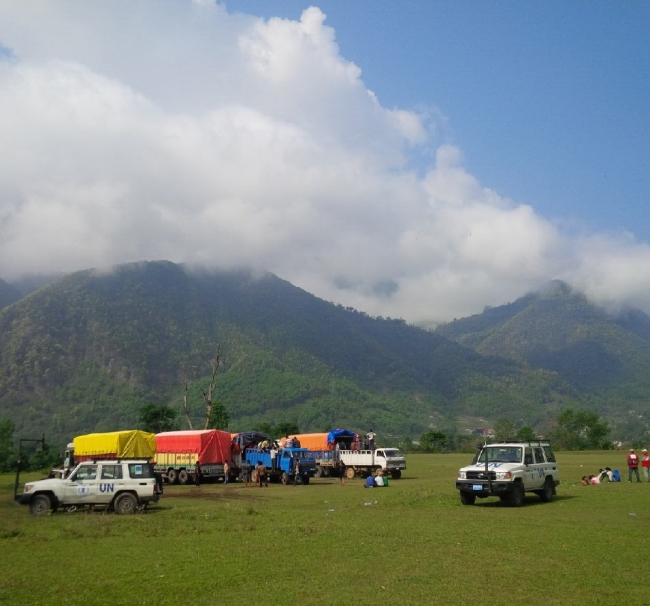 ネパール地震 食糧と救援物資を積み被災地へ急行