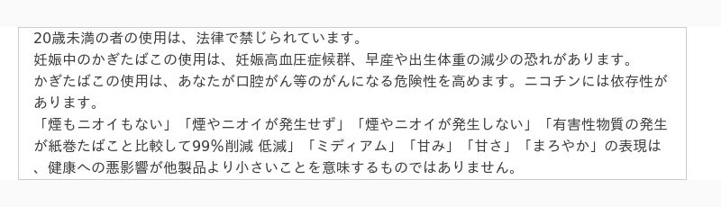 ※3 世界保健機関が紙巻たばこ煙中から低減を推奨する9種類の有害性物質の平均値に関して、リファレンス紙巻たばこ(タール約9mg)から出る煙と「VELO」パウチの使用中に発生する物質とを比較した結果、99%低減されていることを意味します。本製品は依存性のあるニコチンを含みます。この表現は、健康へのリスクがないことを意味するものではありません。