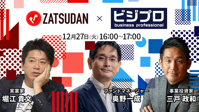 株式会社ZATSUDANは、2022年12月27日(火)に『InterFM「ビジプロ」(InterFM897で放送中の人気番組)』と共同で、新進気鋭のファンドマネージャーをゲストに迎えた豪華対談イベントを開催します。