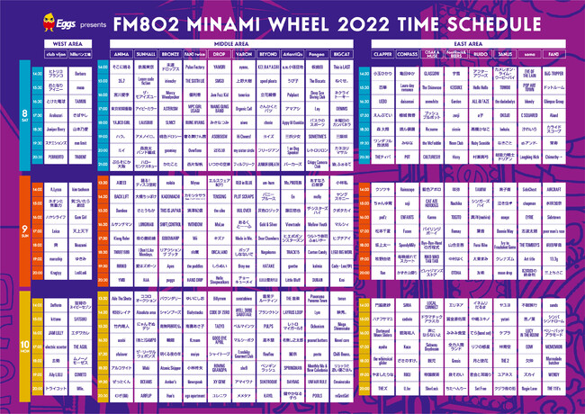 全450組が出演!「Eggs presents FM802 MINAMI WHEEL 2022」。当日のタイムテーブルを発表!