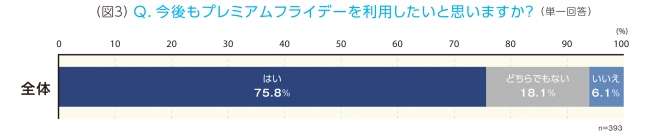 さらに利用した人のうち、「今後もプレミアムフライデーを利用したい」と回答した人は75.8%と高い数値となりました。 (図3)