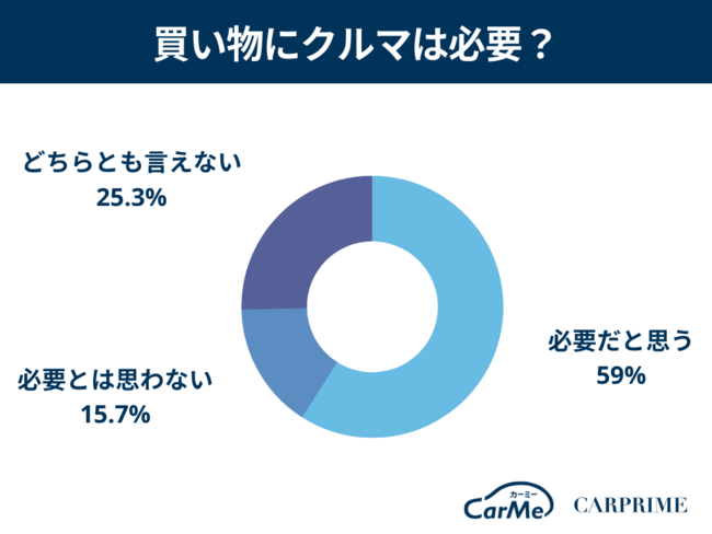 クルマ離れが騒がれる中、意外にも約6割の方が、買い物にクルマは必要だと感じている結果となりました。遠方への買い出しや、量をたくさん買うときには、やはりクルマが重宝されるのではないでしょうか。