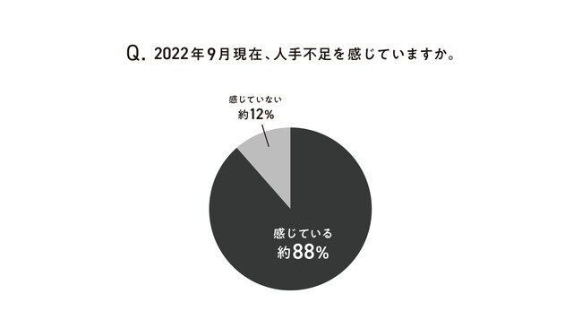 新型コロナウイルスの影響で低迷基調にあった宿泊業界は、2021年と比較すると8割を超える旅館・ホテル事業者が、国内宿泊客が増加したと回答し、一定の落ち着きを見せているように捉えられる。故に、「全国旅行支援」や「GoToトラベルキャンペーン再開」について期待をしている事業者は約8割と多い結果に。一方で、依然として変わらない人手不足問題に課題を感じる事業者は約9割で、深刻化することが見込まれる。