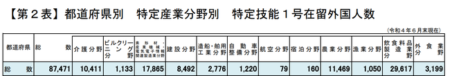 ※出入国在留管理庁「特定技能外国人数 令和4年6月末現在 概要版」より抜粋