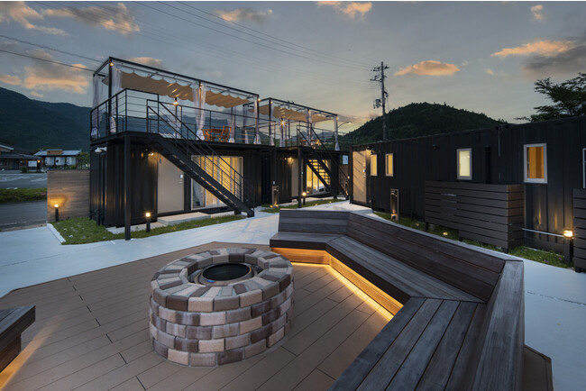 続く第2弾として、古くから熊野詣の宿場町としてにぎわった中辺路町近露に、「SEN.RETREAT CHIKATSUYU」を2022年4月28日、開業しました。コンセプトは「遊ぶ、微笑む、そしてつながる宿」。バーベキューができるプライベートガーデンや、焚き火を囲めるテラス、宿泊客自身で生地からこねて焼けるピザ窯などを備えています。非日常にワクワクしたり、気の置けない仲間や家族とゆったり過ごしてホッとしたり、リラックスできる空間となっています。また、コンテナ1棟を1つの客室としているため、外から直接部屋に出入りでき、密を避けられます。「熊野古道を訪れる観光客=トレッキング目的のみ」という現状を変えるべく、さまざまな観光目的の方に楽しんでいただける宿を目指します。
