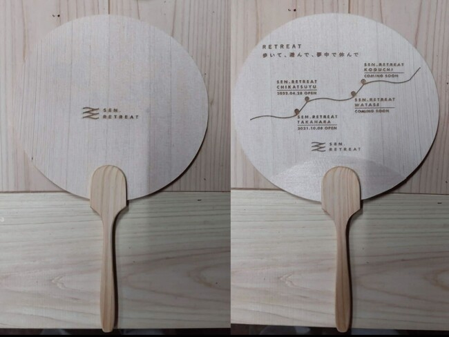 これもひとえに、コロナ禍の開業にもかかわらず、多くの皆様にご愛顧いただいたおかげです。1年間の感謝の思いを込めてこの度、期間限定の記念品としてSEN.RETREATのロゴ入りの木製うちわをご用意しました。